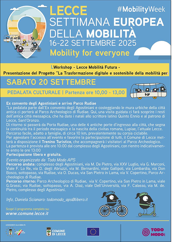 “Settimana Europea della Mobilità”, gli appuntamenti di sabato 20 settembre