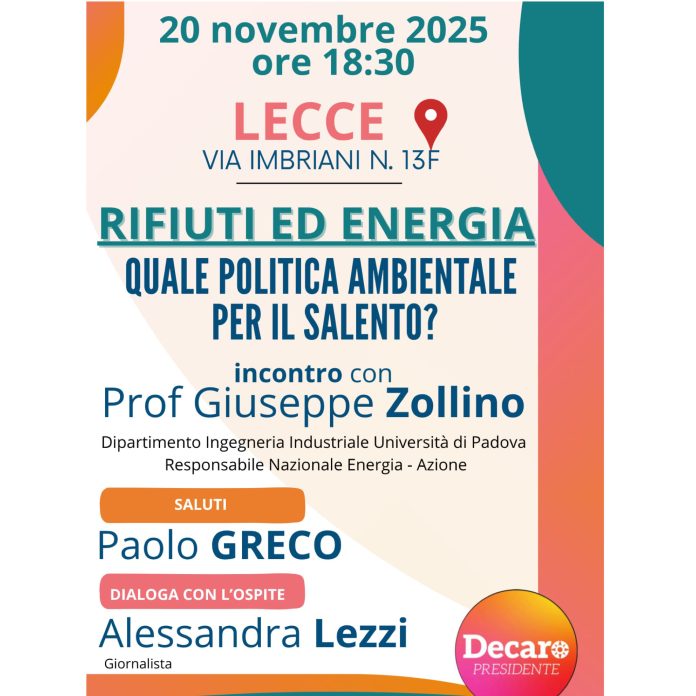 HomeArchivio NotizieRifiuti ed energia, a Lecce con Paolo Greco il professor Zollino