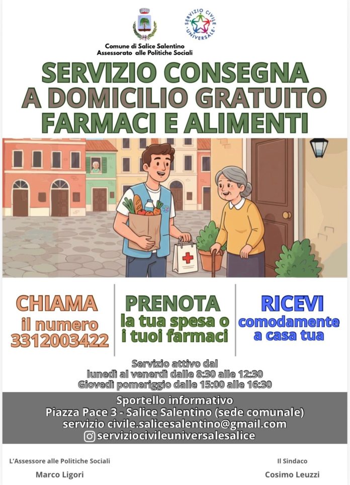 HomeArchivio NotizieSalice Salentino, servizio di consegna a domicilio gratuito di farmaci e alimenti