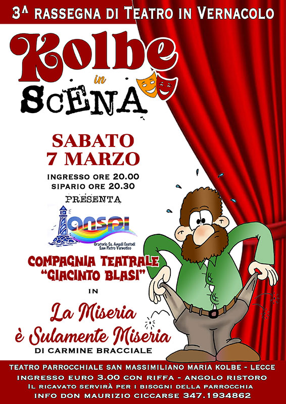 Sabato 7 marzo torna Kolbe in Scena con la commedia in vernacolo della Compagnia Teatrale “Giacinto Blasi”