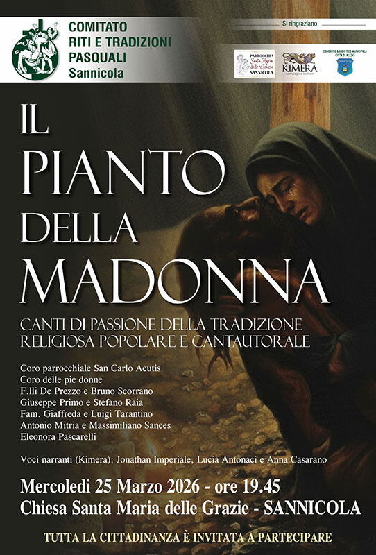 HomeAttualità"Il Pianto della Madonna" mercoledì 25 marzo chiesa Madonna delle Grazie a...