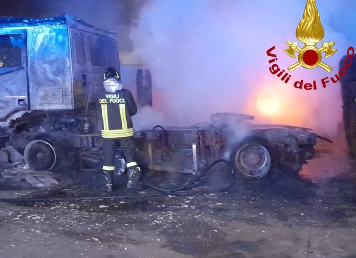 In fiamme nella notte un autocarro e un muletto di proprietà di una ditta salentina