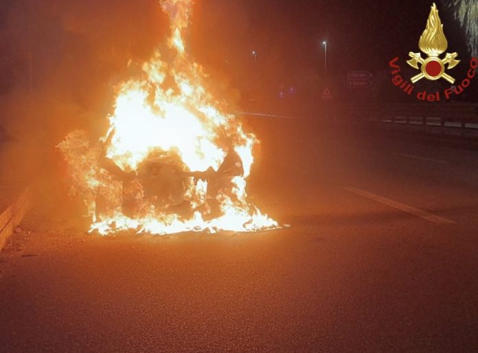 Auto in fiamme sulla statale 16, distrutta una Jeep Compass