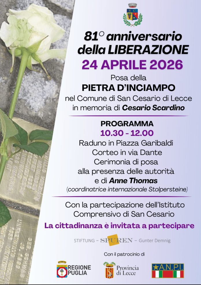 Quarta pietra d’inciampo a San Cesario di Lecce per Casario Scardino