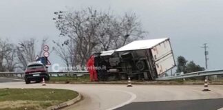 Furgone si ribalta su un fianco mentre effettua una rotatoria, corsa...