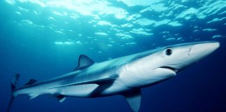Squalo verdesca di 2 metri a pochi metri dalla riva di...