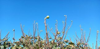 Novembre folle con ciliegi in fiore e fichi in produzione