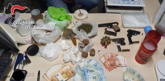 In casa oltre un chilo e mezzo di droga, pistole, soldi...