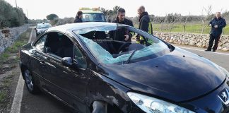 Auto si ribalta dopo lo schianto contro un muretto, in ospedale...