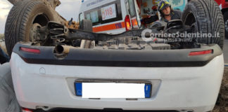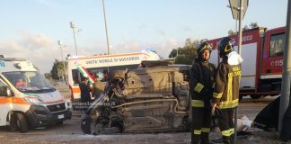 Paura all’uscita di Lecce, auto si ribalta: in due soccorsi dalle...