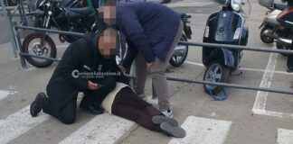 Cade, sbatte la testa contro gli stalli per gli scooter e...
