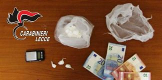 Alla vista dei militari tenta di ingerire la cocaina, in casa...