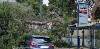 Grosso pino si abbatte su un’auto, tragedia sfiorata alla fermata del...