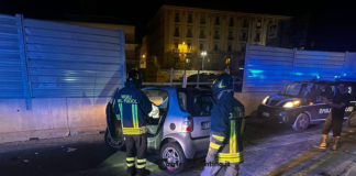 Incidente in centro: auto sfonda barriera del cantiere e rompe una...