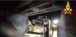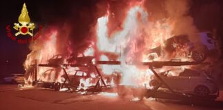 Rogo nella notte: a fuoco bisarca con 9 auto a bordo....