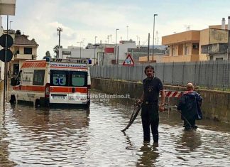 SALENTO (Lecce) - Il maltempo sferza il Salento e le abbondanti piogge bloccano anche il passaggio di un’ambulanza.