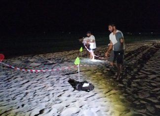 LIDO MARINI/UGENTO (Lecce) – Sotto gli occhi increduli di alcuni bagnanti, una tartaruga depone le sue uova sulla spiaggia nella notte.