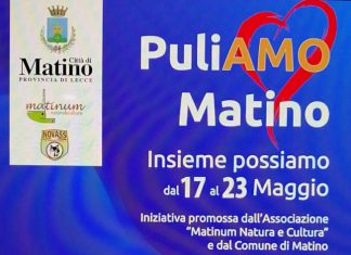 MATINO (Lecce) - Dal 17 al 23 maggio 2021 si terrà l’iniziativa “Puliamo Matino” promossa dalle associazioni “Matinum natura e cultura” e “Novass San...