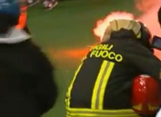 Vigile del fuoco ferito da una bomba carta durante la partita...