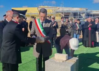 Posata la prima pietra della nuova caserma dei carabinieri a Carmiano....