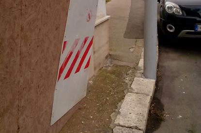 Palo della luce in mezzo al marciapiede,a pochi metri lo scivolo...