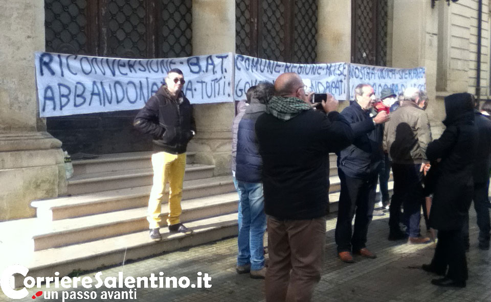 LECCE - Sit-in di protesta da parte di una trentina di ex dipendenti della manifattura tabacchi Bat davanti al Palazzo di Giustizia contro una...