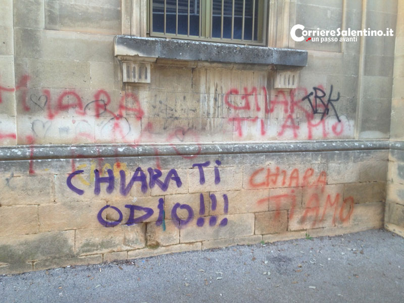 LECCE – Dopo gli ottanta “Chiara ti amo”, spunta anche un “Chiara ti odio”. Nell'ottobre scorso, un anonimo “writer” innamorato costellò di dichiarazioni d'amore...