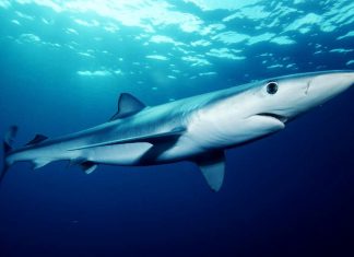 Squalo verdesca di 2 metri a pochi metri dalla riva di...