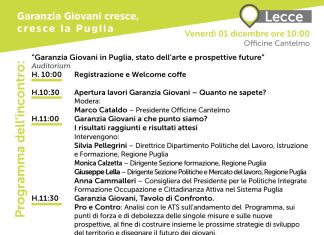 LECCE - Si conclude a Lecce il roadshow Garanzia Giovani incontra la Puglia. Appuntamento venerdì 1° dicembre, dalle 10.00, presso Officine Cantelmo (Viale M. de...