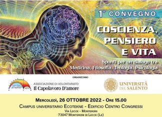 “Il Capolavoro d’Amore” e Unisalento organizzano il Primo Convegno su “Coscienza,...