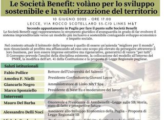 Puglia, Lecce. Convegno sulle Società Benefit. Venerdì 10 giugno