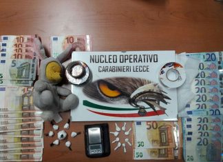 SURBO (Lecce) - Cocaina e soldi. Anche tanti. Circa 850 euro. In manette è finito Nicola Vitale, 58 anni, di Surbo. L’uomo è stato...