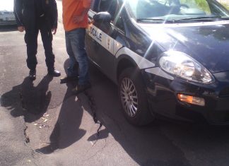 La pioggia squarcia l’asfalto, buca di dieci centimetri sul manto stradale...