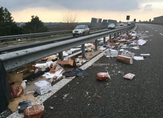 Scoppia una ruota e il furgone si ribalta: salumi disseminati per...