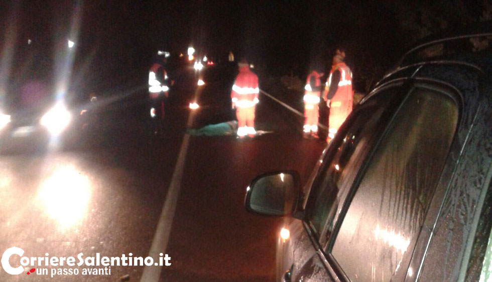 SCORRANO (Lecce) - Vagava a piedi sulla statale 275, quando un'auto l'ha travolto in pieno, uccidendolo sul colpo.
