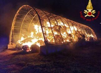 Fiamme nella notte: in fumo trattori e balle di paglia in...