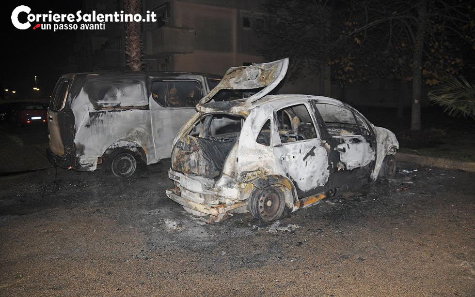 PRESICCE (Lecce) - Un'auto ed furgone divorati dalle fiamme. È accaduto ieri notte nel centro abitato di Presicce, in via Tommaso Fiore, dove un...