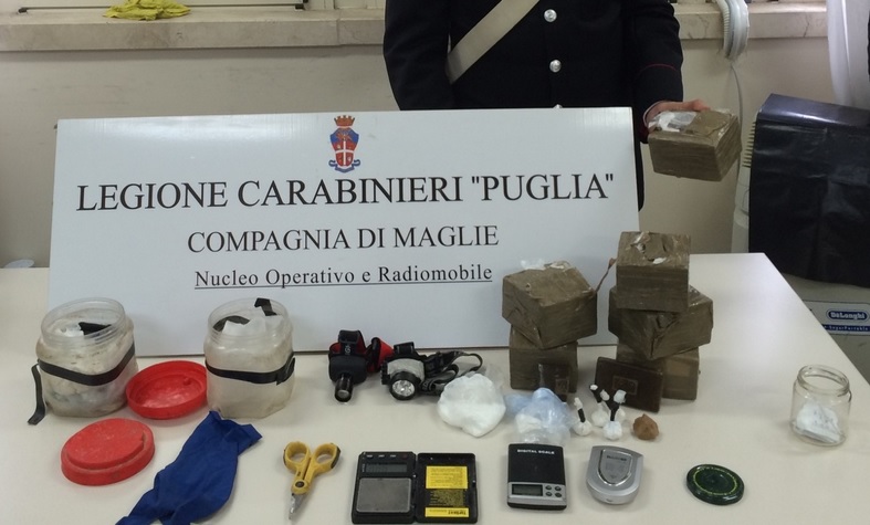 MURO LECCESE (Lecce) - Eroina, cocaina e sei chili di hashish. I carabinieri li hanno sorpresi mentre prelevavano la droga da un muretto a...