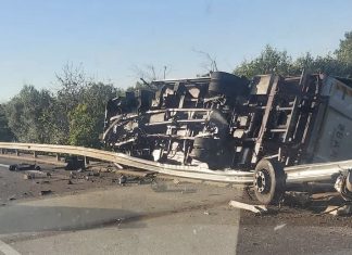 Tir sfonda il guardrail e si ribalta, tragedia sfiorata sulla statale...