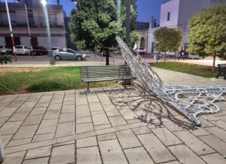 Forti raffiche di vento spezzano i cavi: luminarie cadono sulla panchina....