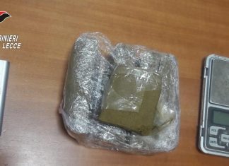 MARITTIMA DI DISO (Lecce) - Durante la perquisizione domiciliare spuntano 4 panetti di droga, oltre al materiale per confezionarla e venderla, per un potenziale...