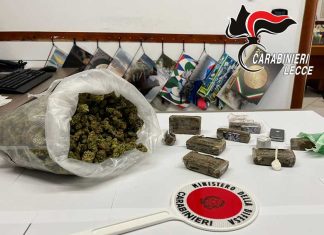 MELENDUGNO (Lecce) - Mezzo etto di hashish addosso, oltre un chilo di droga in casa. E per un 24enne scatta l’arresto.