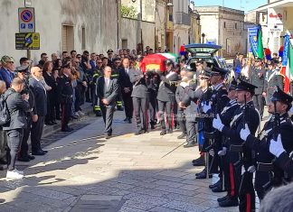 MONTESANO SALENTINO (Lecce): Lacrime, dolore e disperazione per l'ultimo saluto a Francesco Ferraro, il carabiniere deceduto in servizio a causa di un incidente stradale....