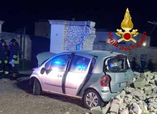 LECCE - Schianto contro un muro di cinta sulla provinciale.