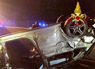 COPERTINO (Lecce) – Si schianta contro un’auto in sosta e si ribalta più volte, morendo sul colpo intrappolato tra le lamiere.
