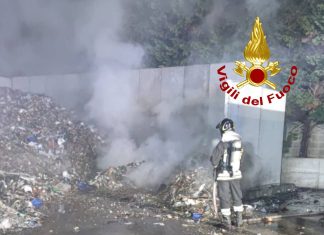 SALENTO - Un incendio nel piazzale di un’azienda di smaltimento rifiuti e due mezzi in fiamme.