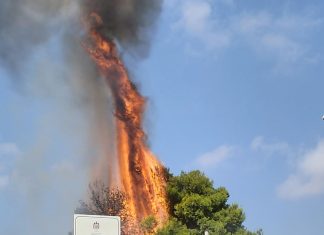 SQUINZANO (Lecce) - Le fiamme partono da alcune sterpaglie e si scatena l'inferno nel centro del paese.