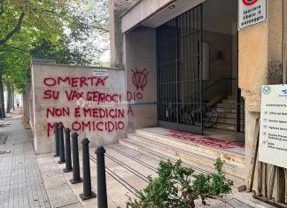 LECCE - “Omertà su vax genocidio non è medicina ma omicidio”, “medici pro vax assassini” e altre frasi deliranti, accompagnati dalla “W” rossa e...