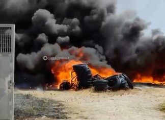 SURBO (Lecce) - Un incendio divampa alle spalle del deposito di un’azienda ed il fumo nero raggiunge anche la città.