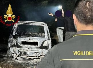 Distrutta dal rogo una Matiz rubata, le fiamme minacciano la pineta:...